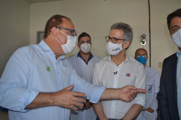 Ao lado do governador Romeu Zema, do vice-prefeito, Guilherme Guimarães, do secretário de Estado da Saúde de MG, Fábio Baccheretti, do presidente do Cisrun –