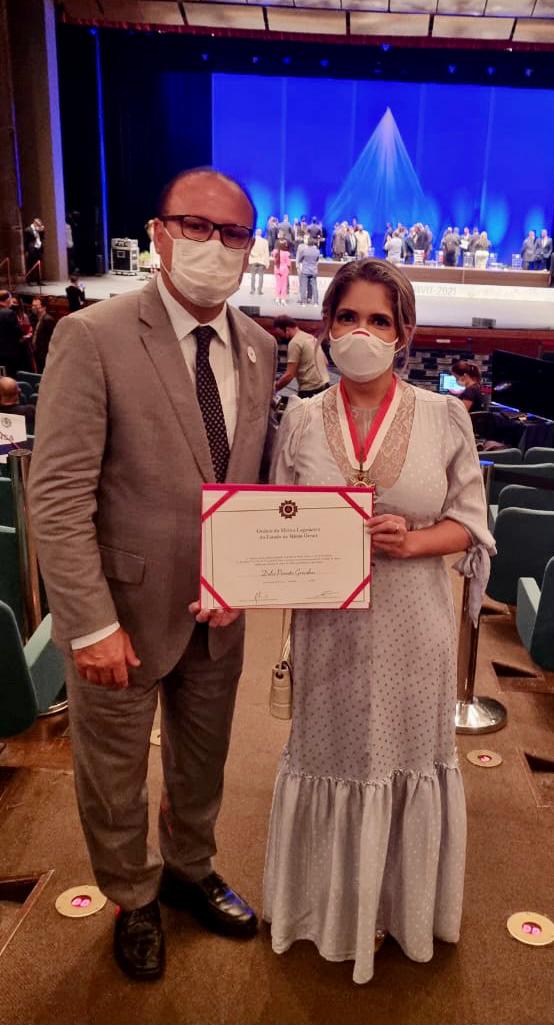 A secretária de Saúde de Montes Claros, Dulce Pimenta, recebeu a homenagem, por indicação do deputado Gil Pereira, por gerir com excelência o setor no município norte-mineiro durante o enfrentamento à pandemia.